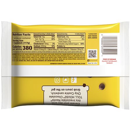 40 fat 55 carbs 5. Nestle Toll House Chocolate Chip Ice Cream Sandwich Large Nestle Toll House 1 sandwich Calories. Toll House Ice Cream Cookie Sandwich.
